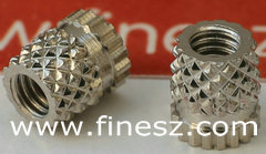 左图这款双斜压花螺母亦可能过热压方式嵌入塑料件-如前面所说,超声波压入与热熔压入并没有太严格的界限。