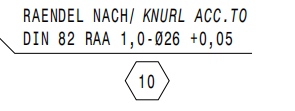 描述示例2:直纹滚花,直纹槽型(RAA 型),齿距 t=0.6mm(06),齿形角α=90°(90);
