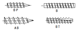 5、钻尾螺丝:钻尾螺丝有CSD(机械牙),BSD(自攻AB牙)两种。其牙距或牙数可分别参考机械螺丝(CSD牙)和自攻螺丝(BSD牙)。