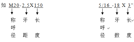 公制螺纹是以MM(毫米)为单位,它的牙尖角为60度。美制螺纹和英制螺纹都是以英寸为单位的。美制螺纹的牙尖角也是60度,而英制螺纹的牙尖角为55度。由于计量单位的不同,导致了各种螺纹的表示方法也不尽相同。例如像M16-2X60表示的就是公制的螺纹。他的具体意思是表示该螺丝的公称直径为16MM,牙距为2MM,长度为60MM,又如:1/4—20X3/4表示的就是英制的螺纹,他的具体意思是该螺丝的公称直径为1/4英寸(一英寸=25.4MM),在一英寸上有20个牙,长度为3/4英寸。另外要表示美制螺丝的话一般会在表示英制螺丝的后面加上UNC以及UNF,以此来区别是美制粗牙或是美制细牙。