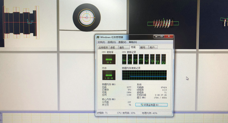 测试光选,满负荷条件下CPU使用率下降到30%几,不再有“队列存储图片过多”现像: