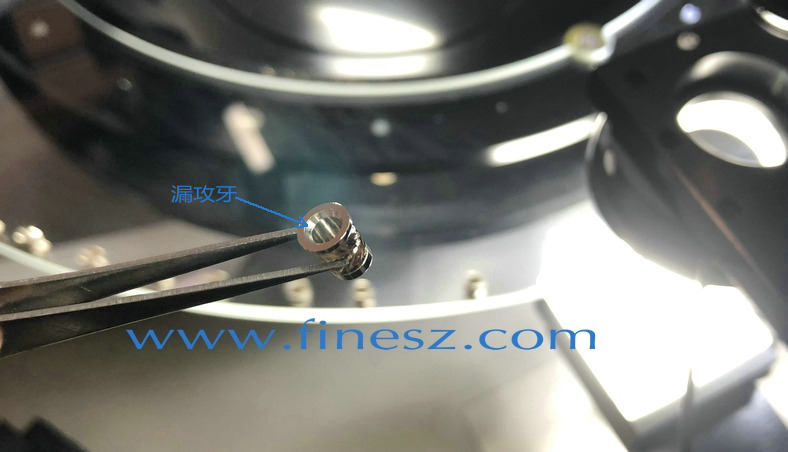 事实上,还有一种无螺纹状况叫“螺纹不到底”,即螺纹的根部没有攻透,如果产品来料的上下方向不统一,这种情况下还是会有不良品遗漏。