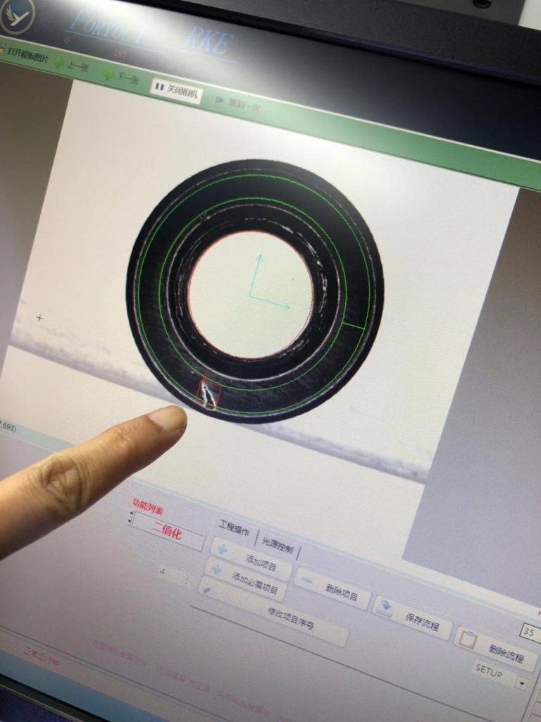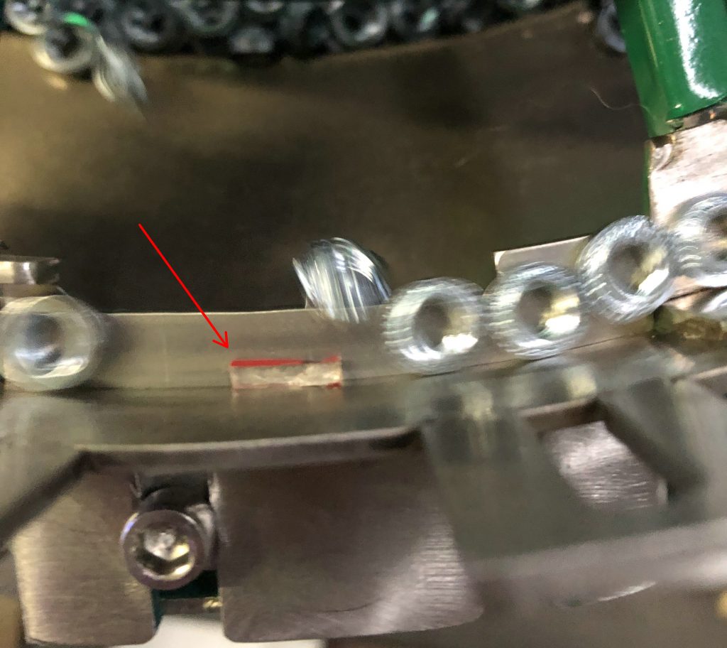 细节图(在进料口贴了一块不干胶,将齿面朝上的剔除):