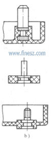 9) 轴类嵌件一般是插入模具相应的孔中固定,为防止熔料挤入螺纹槽内,可采用图所示的几种方法。