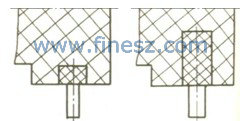 ③ 内凹定位,如图中所示。使嵌件内凹,此内凹与模具上相应的轴配合而定位。