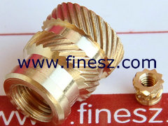 IUT是一种代号,Insert of Ultrasonic, straight wall(可超声植入嵌件,柱形),即本页所展示的这类双斜压花螺母,生产所采用材质主要有三种:
