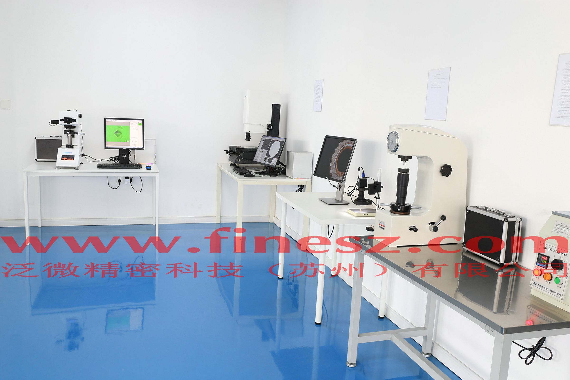 HRC洛氏硬度机(右边那台小的设备是镶嵌机,作为硬度机的测试辅助设备,将那些不便定位或非常小的零件嵌入电木胶后再上硬度机测试):