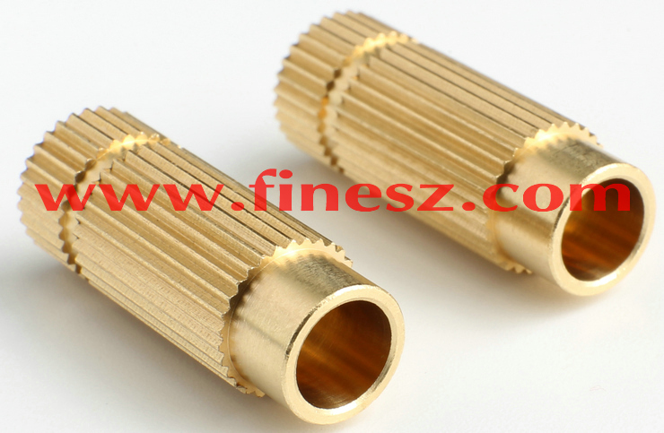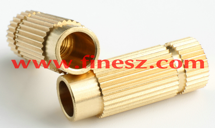 应于热熔注塑的铜预埋螺母,一般表面采用拉直纹花或网纹花或斜纹花.埋置于注塑件后防止松动.
